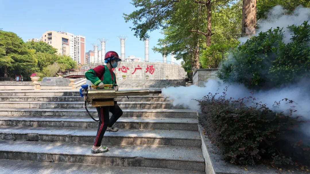 在城市中心广场,消杀人员则重点围绕市民休闲聚集的座椅区、基础设施周边,以及广场绿化带、地下管网出入口等区域开展蚊虫消杀工作,及时清除枯枝落叶、生活垃圾,喷洒防蚊药水。